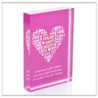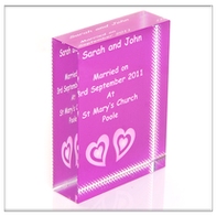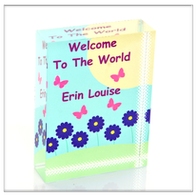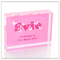 Contemporary glass block keepsakes, fully personalised and suitable for a variety of occasions. Available in 2 different sizes and colour options.