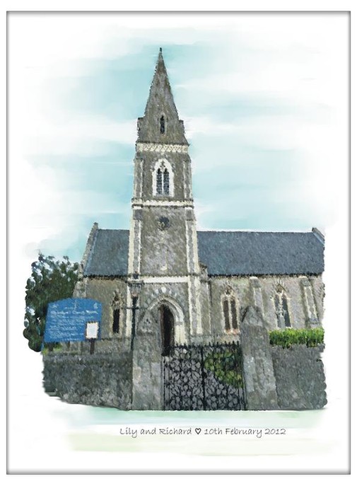 - Wedding venue photo transformed digitally into the style of a watercolour painting.